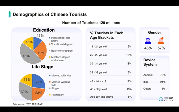2025年中国出境游人次已恢复至1.2亿规模。Andy Ng援引悠易科技第一方DMP数据指出,中国出境游客中30-44岁中青年群体占比达53%,成为消费主力。值得注意的是,高端消费群体更倾向于通过免税店(41%)及品牌专卖店(26%)进行购物,且搜索关键词集中于奢侈品牌、高端酒店与航空服务,显示出强烈的品质化需求。
