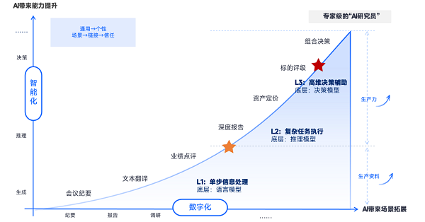 · 3.0时代:底层模型再次取得突破,AI将具备“直觉”。能够通过高频深度持续交互,消化用户全部历史想法和数据,提供定制化、高维度决策辅助。